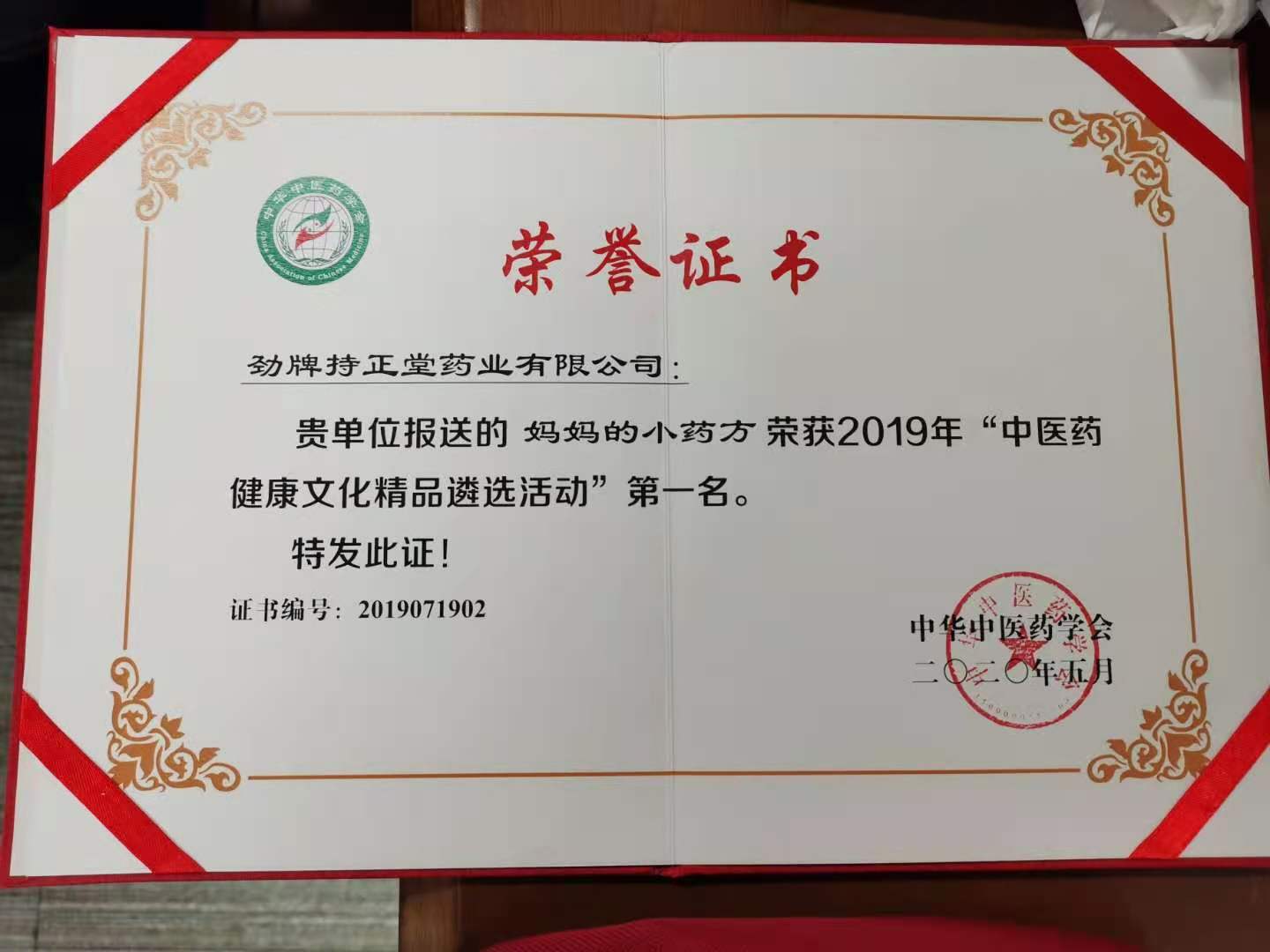 “媽媽的小藥方”中醫藥健康文化精品遴選活動第一名